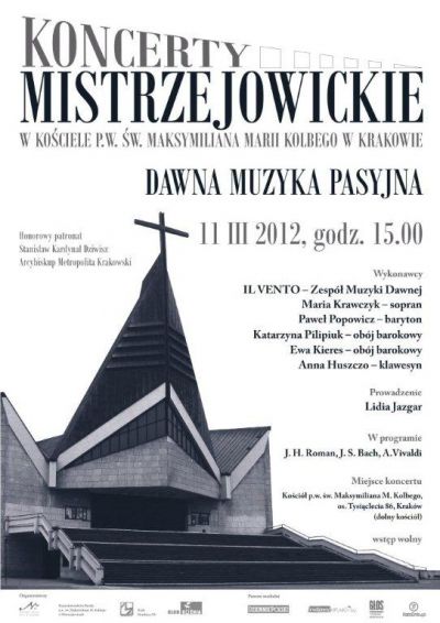 Muzyka wymienionych i innych kompozytorów zabrzmi w marcu br. w czterech nowohuckich wištyniach: Bazylice oo. Cystersów w Mogile, Kociele pw. w. Maksymiliana Marii Kolbego w Mistrzejowicach, Kociele Matki Bożej Częstochowskiej na os. Szklane Domy, Kociele Matki Bożej Nieustajšcej Pomocy na os. Bohaterów Wrzenia.