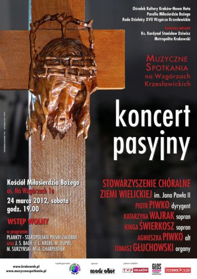 W czwartš sobotę marca odbędzie się 34. koncert z cyklu Muzyczne Spotkania Na Wzgórzach Krzesławickich. Podczas Koncertu pasyjnego usłyszeć będzie można plankty polskie (staropolskie pieœni żałobne), a także utwory D. Buxtehude, J. S. Bacha, M. Dupre, J. L. Krebs, M. Surzyńskiego i M. A. Charpentier.