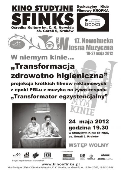 W ramach XVII Nowohuckiej Wiosny Muzycznej zapraszamy na projekcję krótkich filmów reklamowych z epoki PRL-u z muzykš na żywo zespołu Transformator Egzystencjalny