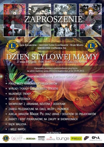 Podczas imprezy przewidywany jest wykład p. Moniki Jurczyk – OSY osobistej stylistki na temat dopasowania ubioru do sylwetki i stylu życia oraz wykład trenera z Centrum Terapii i Rozwoju Open Medical o nowej metodzie biofeedback stosowanej w psychologii i medycynie. Odbędzie się również pokaz mody zorganizowany przez krakowskich projektantów. Ponadto goœcie będš mogli zakupić ubrania i dodatki w specjalnie przygotowanych showroomach korzystajšc z porad stylistek, które towarzyszyć im będš przez cały czas trwania imprezy. Fryzjerzy i gabinety SPA będš informować uczestników o najnowszych trendach i sposobach dbania o ciało. Przez cały czas trwania eventu podziwiać będzie można obrazy p. Małgorzaty Bieniek maggie piu.