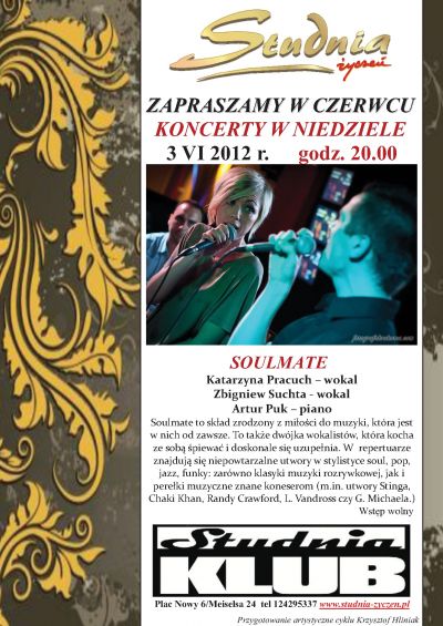 Soulmate to skład zrodzony z miłoœci do muzyki, która jest w nich od zawsze. To także dwójka wokalistów, która kocha ze sobš œpiewać i doskonale się uzupełnia. W repertuarze znajdujš się niepowtarzalne utwory w stylistyce soul, pop, jazz, funky: zarówno klasyki muzyki rozrywkowej, jak i perełki muzyczne znane koneserom (m.in. utwory Stinga, Chaki Khan, Randy Crawford, L. Vandross czy G. Michaela.