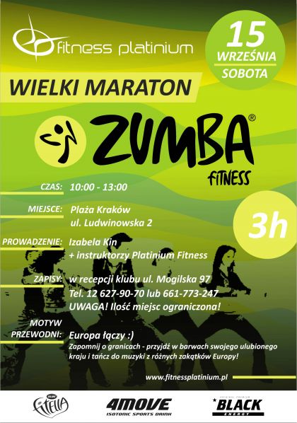 Kochasz ruch i taniec? W takim razie nie ma lepszego sposobu na pożegnanie lata 15 wrzenia 2012 na krakowskiej Plaży odbędzie się Wielki Maraton Zumba FitnessŽ. O zaletach tych zajęć najlepiej przekonasz się sam, doładowujšc organizm lawinš pozytywnej energii wspólnie z sieciš Platinium Fitness.