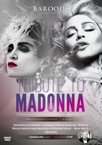 W pištek, 5 paŸdziernika 2012 r. Baroque Club w Krakowie zaprasza na niepowtarzalnš imprezę poœwięconš jednej z największych artystek popowej sceny muzycznej – Madonnie. Goœciem specjalnym wieczoru będzie znany prezenter muzyczny – Marek Sierocki.