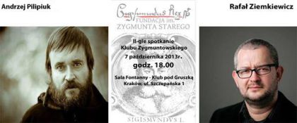W najbliszy poniedziaek 7 padziernika zapraszamy na kolejne spotkanie Klubu Zygmuntowskiego, do Sali Fontany w Klubie Pod Gruszk. Tym razem gomi Klubu Zygmuntowskiego bd RAFA ZIEMKIEWICZ (tygodnik "DO RZECZY") i ANDRZEJ PILIPIUK (pisarz i publicysta).