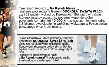 W tym roku będziemy ustanawiać rekord we wspólnym chodzie dookoła Ziemi. Startujemy już od godziny 6.00 i będziemy na Was czekać przez 12 godzin. Każdy będzie mógł się przyczynić do obejścia naszej planety. Runda finałowa z Robertem Korzeniowskim rozpocznie się o 16.00. Ponadto przewidzianych jest wiele dodatkowych atrakcji i nagród.