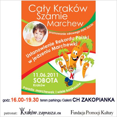 16.00 – rozpoczęcie imprezy Paradą Marchewek na Rynku Głównym w Krakowie