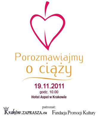Serdecznie zapraszamy przyszłe Mamy na kolejne spotkanie z cyklu pt. "Porozmawiajmy o ciąży”, które odbędzie się w Krakowie w dniu 19.11.2011 roku w Hotelu Aspel w Krakowie, o godzinie 10.00.