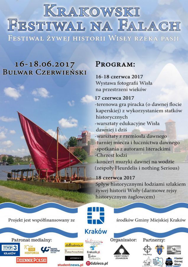 Krakowski Festiwal na Falach – Rzeka Pasji to wyjątkowe wydarzenie, inaugurujące rejs historycznymi statkami z Krakowa do Gdańska z okazji Roku Rzeki Wisły.