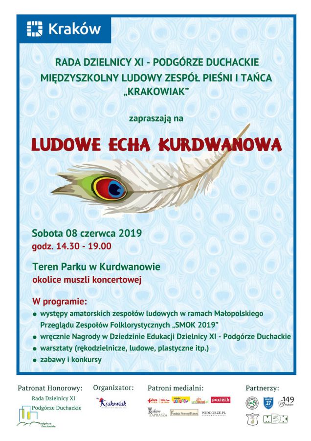 W drugą sobotę czerwca 2019 Międzyszkolny Ludowy Zespół Pieśni i Tańca „Krakowiak” we współpracy z Młodzieżowym Domem Kultury im. K.I. Gałczyńskiego po raz czwarty organizuje w Parku Kurdwanów Ludowe Echa Kurdwanowa, które połączone są z XII Małopolskim Przeglądem Zespołów Folklorystycznych „SMOK 2019”.