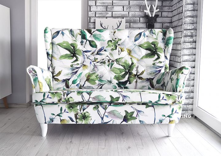 rewelacyjna kanapa uszak w tkaninie plusz czeremcha, eleganckie oparcie pikowane