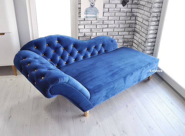 rewelacyjna kanapa szezlong leżanka w tkaninie plusz granat