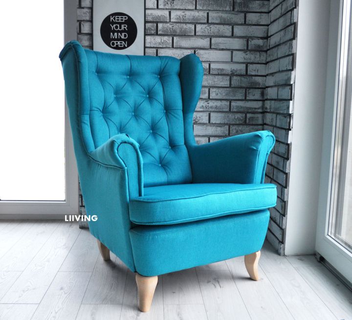 | Fotel Uszak w turkusowej tkaninie |