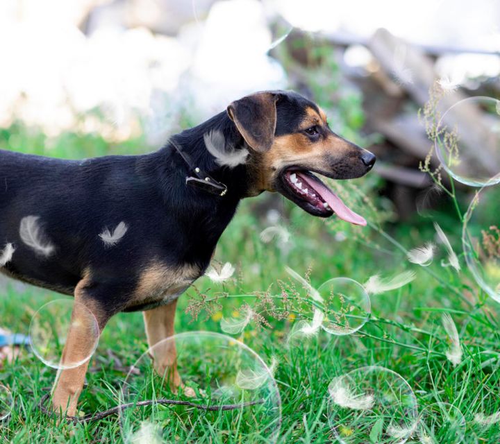 Może mieszkać z innym pieskiem, chociaz ma tendencję do wyjadania pozostałym psiakom w stadzie z misek.