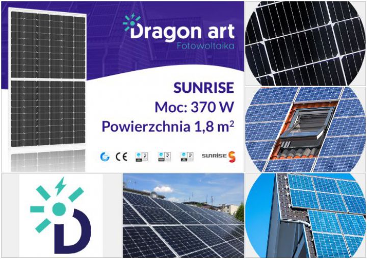 Oferujemy na sprzedaż doskonały panel fotowoltaiczny renomowanej firmy SUNRISE o rewelacyjnej mocy 370 W z powierzchni 1,8 m2.