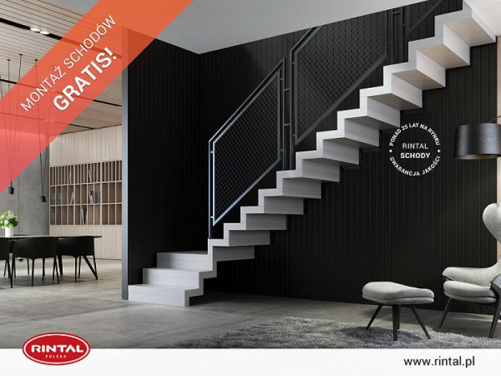 Schody Rintal swoją wieloletnią renomę zawdzięczają zarówno formie, technologii, jak i rzetelnemu montażowi i projektowi schodów. W listopadzie producent proponuje swoim Klientom wyjątkową promocję: montaż schodów za 0zł! Tylko teraz możecie Państwo zainwestować w nowoczesne schody Rintal z niepowtarzalnymi poręczami i balustradami bez dodatkowych opłat za montaż. W listopadzie obowiązuje wyjątkowa PROMOCJA - MONTAŻ GRATIS. Od 01.11 do 30.11.2020 r. możecie Państwo skorzystać ze zniżki przy zakupie schodów wraz poręczami i balustradami.