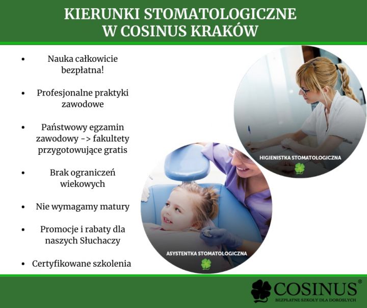 Lubisz pracę z ludźmi? Nigdy nie bałeś się dentysty i chcesz pomagać innym dbać o piękny uśmiech? Zapraszamy do zapisu na nowo otwarte kierunki stomatologiczne w Cosinus Kraków!