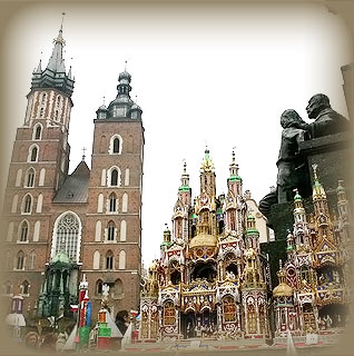 Szopki konkursowe wystawiane są w każdy pierwszy czwartek grudnia pod cokołem pomnika A. Mickiewicza.