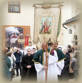 Od końca XVII wieku przy okazji odpustu organizowana była procesja Arcybractwa Męki Pańskiej, istniejącego przy kościele oo. Franciszkanów od 1595 r. Bracia w czarnych habitach, kapturach z wyciętymi otworami na oczy, recytując słowa Memento Homo Mori (pamiętaj człowiecze o śmierci), z wizerunkami trupiej czaszki i piszczeli dochodzili do kościoła Najświętszego Salwatora, okrążali go trzykrotnie i schodzili na dziedziniec ss. Norbertanek, gdzie czekała na nich ksienia zakonu. Arcybractwo Męki Pańskiej istnieje nadal przy kościele oo. Franciszkanów.