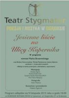 "Jesienne liście na Ulicy Kopernika" w cyklu POEZJA I MUZYKA W OGRODZIE.