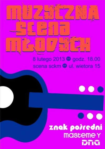 8 lutego 2013 o godz. 18.00 na scenie SCKM ul. Wietora 15 wystąpią zespoły działające w Staromiejskim Centrum Kultury Młodzieży: Znak Pośredni, Mastemey i DNA.