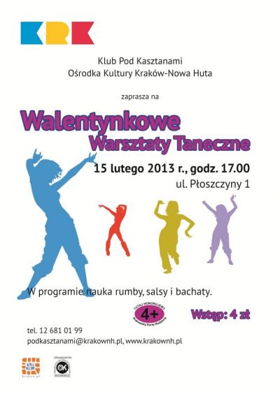 Klub Pod Kasztanami Ośrodka Kultury Kraków-Nowa Huta (ul. Płoszczyny 1) zaprasza 15 lutego 2013 r. o godz. 17.00 na warsztaty nauki tańców latynoamerykańskich – salsy, rumby i bachaty. Na zakończenie spotkania odbędzie się ognista salsoteka. Dla wszystkich uczestników imprezy lemoniada.