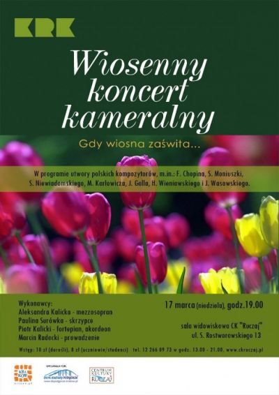 Będzie to już IV koncert kameralny w Centrum Kultury "Ruczaj", którego motywem przewodnim jest wiosna.
