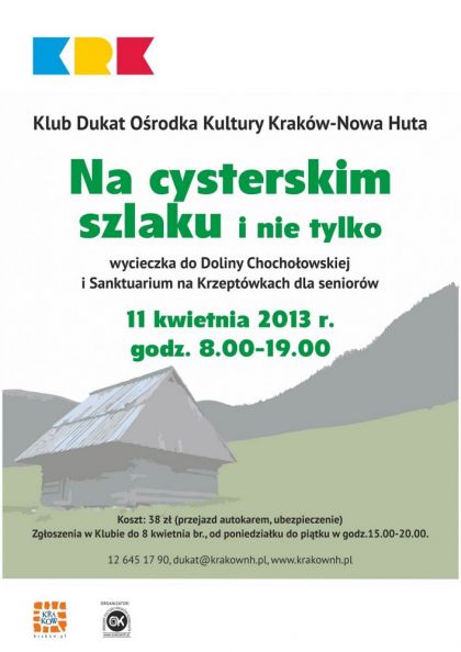 Informacje i zapisy w Klubie Dukat Ośrodka Kultury Kraków-Nowa Huta (ul. Styczna 1) - do 8.04. w Klubie (tel. 12 645 17 90).