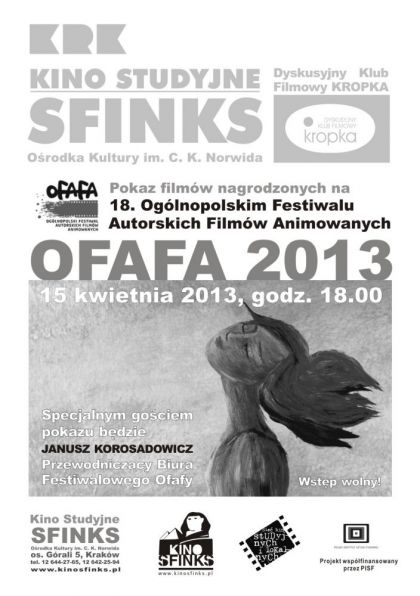 Zapraszamy do Kina Studyjnego Sfinks na pokaz filmów nagrodzonych na 18. Ogólnopolski Festiwalu Autorskich Filmów Animowanych OFAFA 2013.