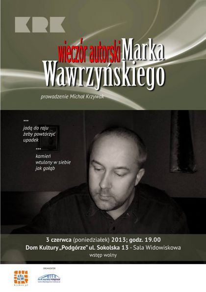 W Domu Kultury Podgórze odbędzie się wieczór autorski krakowskiego poety Marka Wawrzyńskiego. Spotkanie poprowadzi Michał Krzywak.