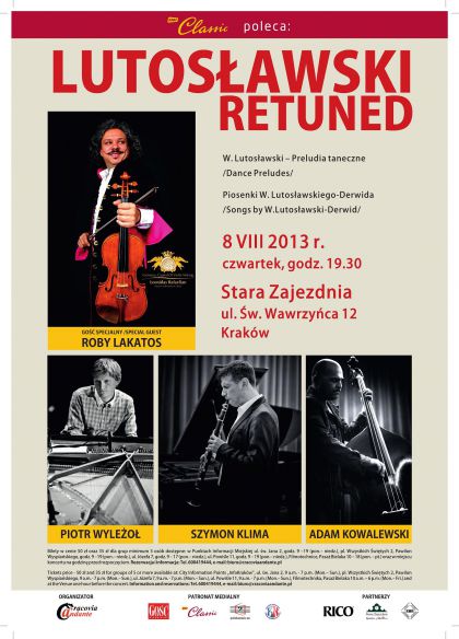 Na program koncertu składają się „Preludia taneczne” w oryginale napisane przez Witolda Lutosławskiego na klarnet z fortepianem, które dzięki interpretacji muzyków zyskają nowe, niepowtarzalne brzmienie i oryginalną interpretację nieklasyczną z licznymi improwizacjami jazzowymi. Gościem specjalnym koncertu będzie Roby Lakatosa, który wraz z Trio zaprezentuje utwory komponowane przez Lutosławskiego pod pseudonimem Derwid.