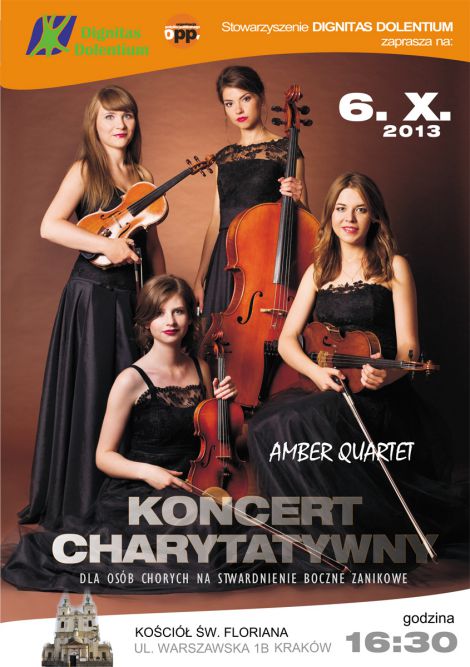 - Być może myślisz: „Jest tylu cierpiących, nie sposób pomóc im wszystkim. Niewiele mogę zrobić. A poza tym, to państwo powinno wspierać potrzebujących.” W ten sposób racjonalizujesz swoją bierność i zagłuszasz sumienie – mówi Paweł Bała, prezes Stowarzyszenia Dignitas Dolentium, zajmującego się niesieniem pomocy osobom nieuleczalnie chorym na SLA - stwardnienie zanikowe boczne. Wszyscy, którzy chcą wesprzeć Stowarzyszenie, będą mieli okazję zrobić to 6 października, przychodząc do krakowskiego kościoła św. Floriana na charytatywny koncert smyczkowego kwartetu Amber Quartet.