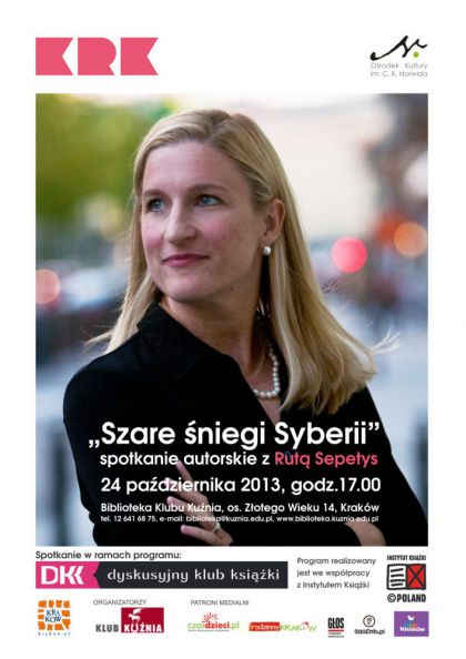 Serdecznie zapraszamy do Biblioteki Klubu Kuźnia Ośrodka Kultury im. C. K. Norwida na spotkanie z Rutą Sepetys, autorką książki pt. „Szare śniegi Syberii”.