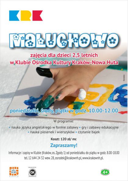 Klub Ośrodka Kultury Kraków-Nowa Huta zaprasza do Maluchowa na zajęcia dla dzieci 2,5 letnich.