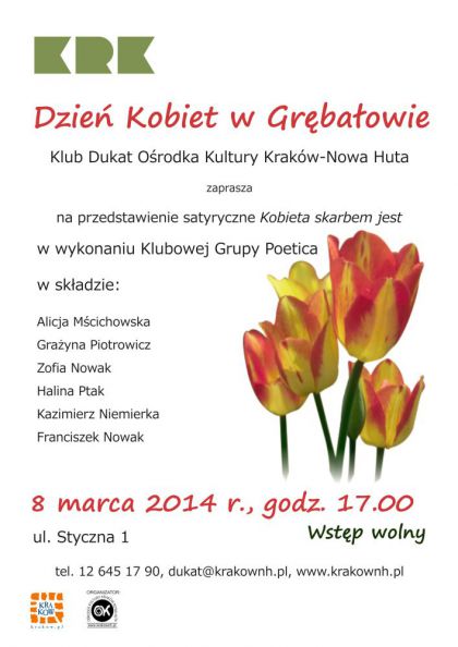 Klub Dukat Ośrodka Kultury Kraków-Nowa Huta (ul. Styczna 1) zaprasza 8 marca o godz. 17.00 na spotkanie z okazji święta Pań.