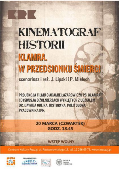 Projekcja filmu o Adamie Lazarowiczu ps. Klamra i dyskusja z udziałem dr Dawida Golika, historyka, politologa i pracownika IPN.