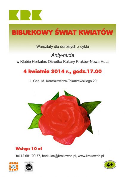 To już kolejne warsztaty z cyklu Anty-nuda w Klubie Herkules Ośrodka Kultury Kraków-Nowa Huta (ul. Gen. M. Karaszewicza-Tokarzewskiego 29).