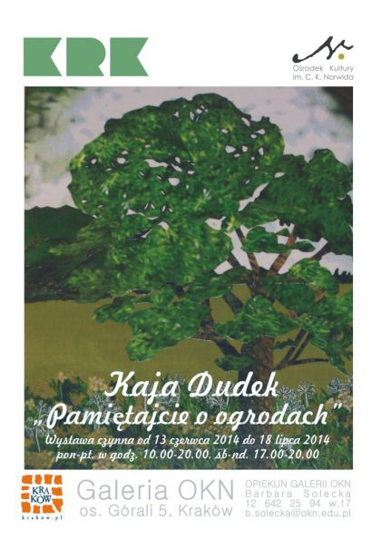 „Pamiętajcie o ogrodach”. Wystawa będzie czynna do 18 lipca b.r.. Na wernisaż i wystawę stęp wolny.