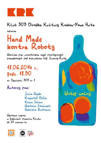 Klub 303 Ośrodka Kultury Kraków-Nowa Huta (os. Dywizjonu 303 nr 1) zaprasza na wernisaż prac plastycznych uczestników zajęć klubowych pod kierunkiem Ingi Suminy-Ruty, który odbędzie się 18 czerwca 2014 r. o godz. 18.30.