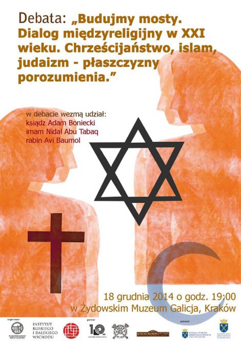 Bliskowschodnie Koło Naukowe UJ ma zaszczyt zaprosić na wyjątkową debatę międzyreligijną pt. „Budujmy mosty. Dialog międzyreligijny w XXI wieku. Chrześcijaństwo, islam, judaizm. Płaszczyzny porozumienia.”