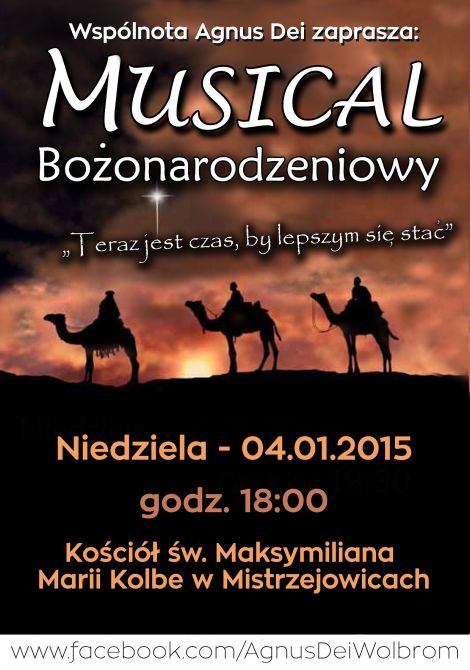 Czas Bożego Narodzenia powoli dobiega końca... Przyjdź i zobacz musical, który napisaliśmy i przygotowaliśmy właśnie na ten czas! Bo "Teraz jest czas, by lepszym się stać"! Zapraszamy