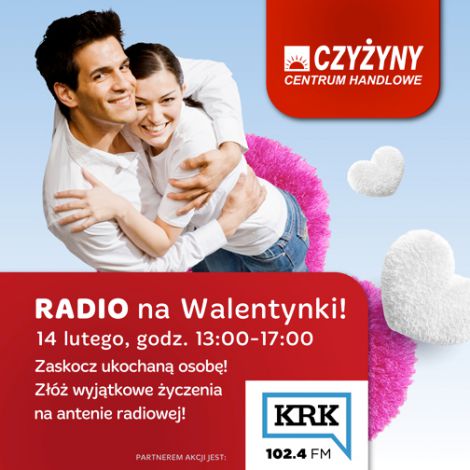 Na wszystkich zakochanych, z okazji ich święta, 14 lutego w Centrum Handlowym Czyżyny czekać będzie Walentynkowe Radio, za pośrednictwem którego będą oni mogli złożyć wyjątkowe życzenia bliskiej osobie.
