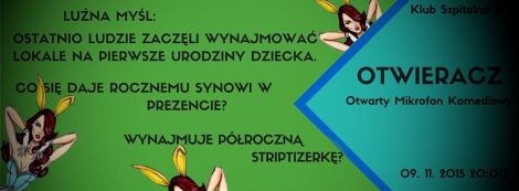 Czym jest Otwieracz? To otwarta scena dla wszelkiego rodzaju komików. Mogą pojawić się na niej stand-up, kabaret, grupy impro, monologi oraz satyryczne wiersze. Co zaskoczy nas tym razem? Cholera wie, ale mam nadzieję, że coś.