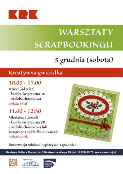 W okresie przedświątecznym zapraszamy dzieci, młodzież oraz dorosłych na warsztaty scrapbooking'u.