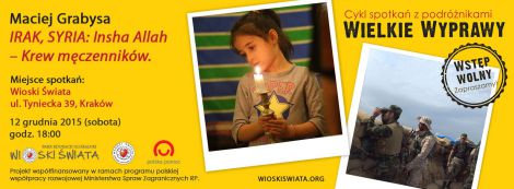 Zapraszamy 12 grudnia o godz. 18:00 do Wiosek Świata przy ul. Tynieckiej 39 na spotkanie filmowe poświęcone sytuacji syryjskim i irackim chrześcijanom. Naszym gościem będzie dziennikarz, scenarzysta i reżyser filmów dokumentalnych – Maciej Grabysa.
