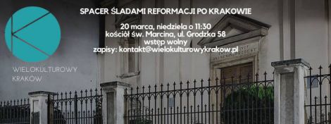 Spacer rozpocznie się w najbliższą niedzielę, 20 marca o 11:30 pod kościołem św. Marcina przy ul. Grodzkiej 58 i potrwa około 2 godziny. Na spacer zapraszamy również dzieci powyżej 6 roku życia. Wszyscy uczestnicy otrzymają materiały dotyczące Reformacji w Krakowie.