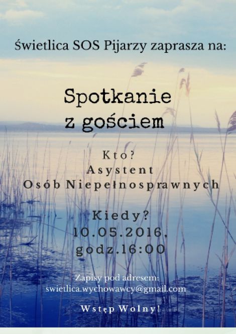 Świetlica SOS Pijarzy serdecznie zaprasza wszystkie dzieci na kolejne z cyklu "Spotkań z pasją". Tym razem gościem będzie Asystent osób niepełnosprawnych z AGH. W programie przewidziano interaktywne warsztaty dotyczące kontaktu z osobami niepełnosprawnymi, podczas których będzie można zmierzyć się z barierami, jakie codziennie pokonują osoby niepełnosprawne z różnymi dysfunkcjami. Zajęcia prowadzone w formie zabawy z pewnością pozwolą przełamać ewentualne bariery i pozytywnie wpłyną na postrzeganie niepełnosprawności przez najmłodszych. Zachęcamy do zapraszania swoich kolegów i koleżanek:)