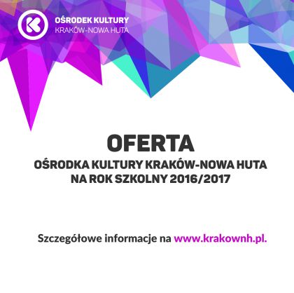 Pracownicy i instruktorzy zapraszają do spędzenia kolejnego roku z Klubami Ośrodka Kultury Kraków-Nowa Huta. Jednocześnie zapewniają, że dołożą wszelkich starań, aby był to niezapomniany rok. Szczegółowe informacje na www.krakownh.pl.