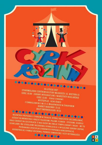 19 lutego 2017 r., godz. 10.00 – warsztaty cyrkowe, godz. 12.00 – spektakl