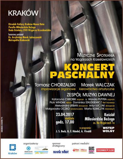 23 kwietnia w Niedzielę Miłosierdzia Bożego, czyli w patronackie święto parafii na Wzgórzach Krzesławickich (os. Na Wzgórzach 1a) odbędzie się Koncert Paschalny z cyklu Muzyczne Spotkania na Wzgórzach Krzesławickich. Początek wydarzenia o godz. 17.00.