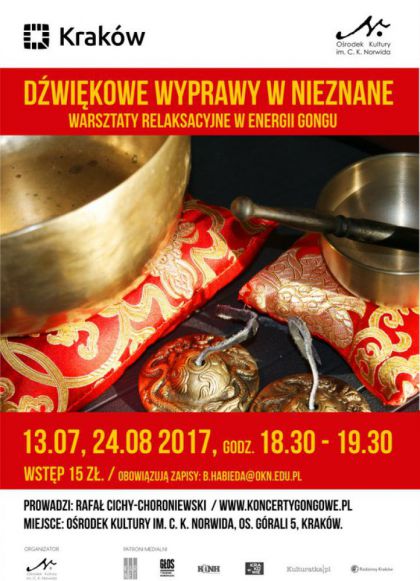 Uczestników prosimy o przyniesienie własnych mat i koców, na których będzie można się położyć i w pełni skorzystać z działania dźwięku.